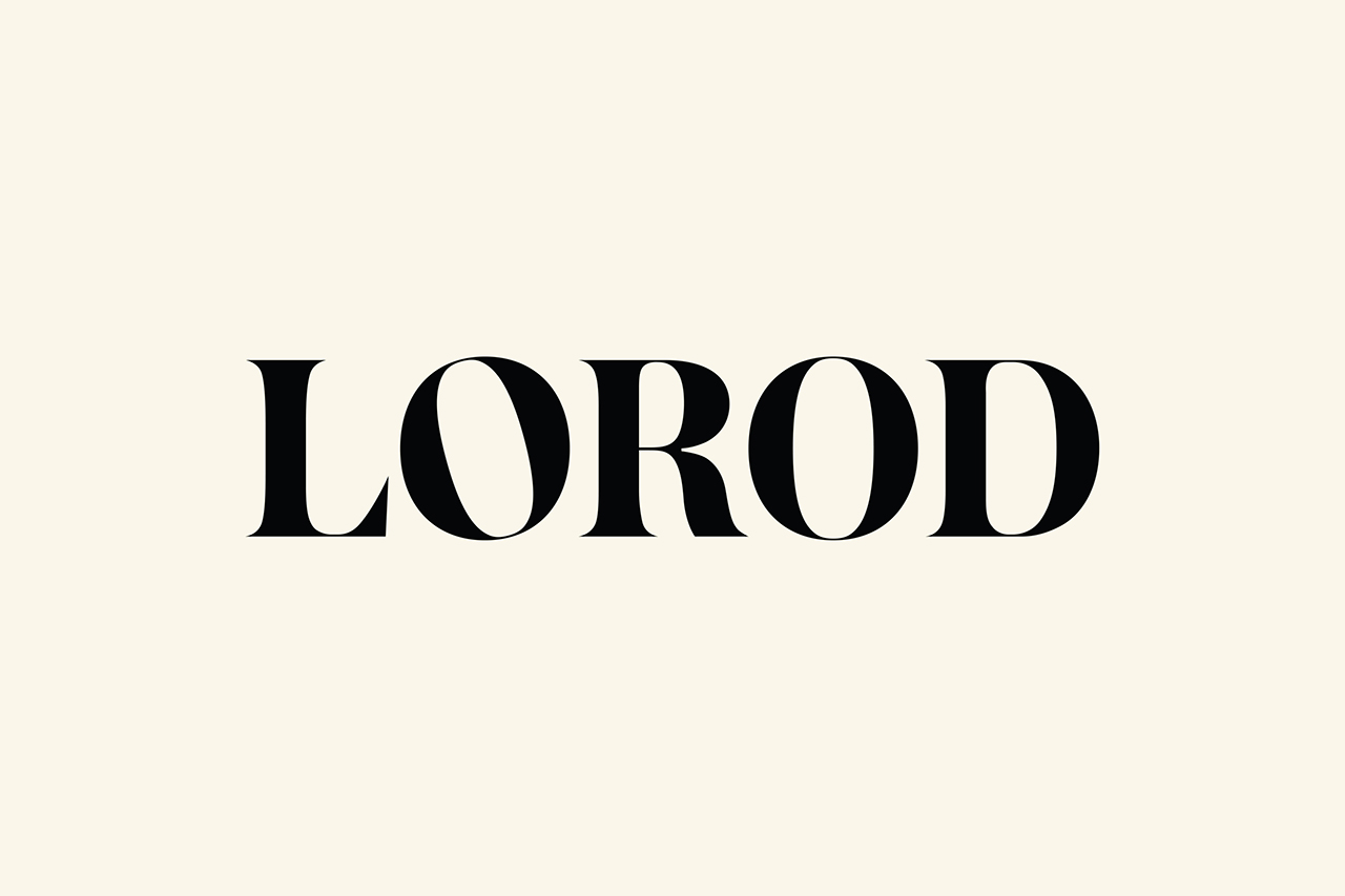 品牌名称“LOROD”来自创始人罗德里格斯的昵称,该服装系列具有独特的个人品味,使每件作品都能够独一无二。设计师正在尝试新的生产和销售方法,所有的衣服都是在美国制造的。LOROD的标志是源于经典字体Austin Bold定制的,这是一个20世纪70年代的现代衬线体字体。标志设计中的第一个“O”稍微倾斜,暗示了衣服具有令人意想不到的细节。