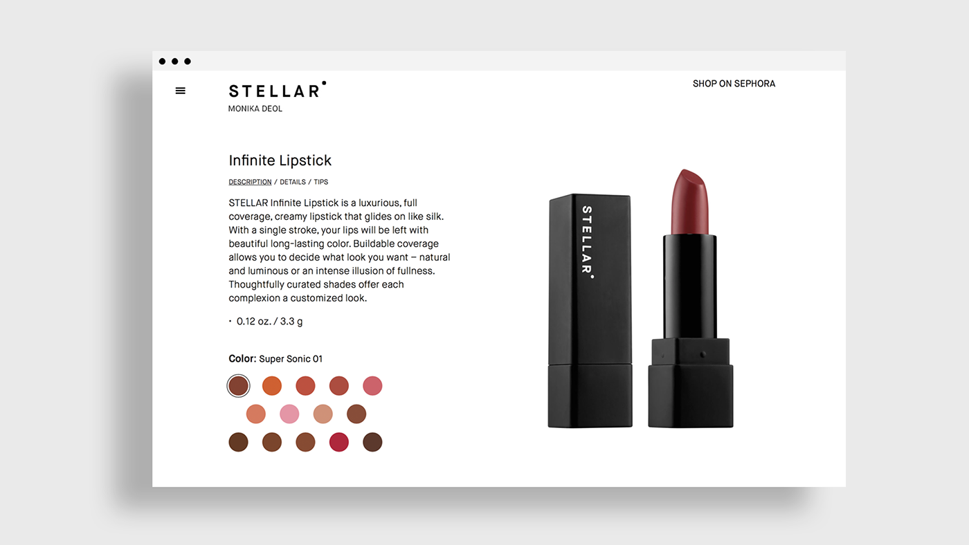 通过与客户合作,我们开发了所有品牌接触点:品牌定位和品牌故事、品牌名称、视觉识别VI、网站、包装、运动摄影,从一开始就在北美Sephora商店成功推出。