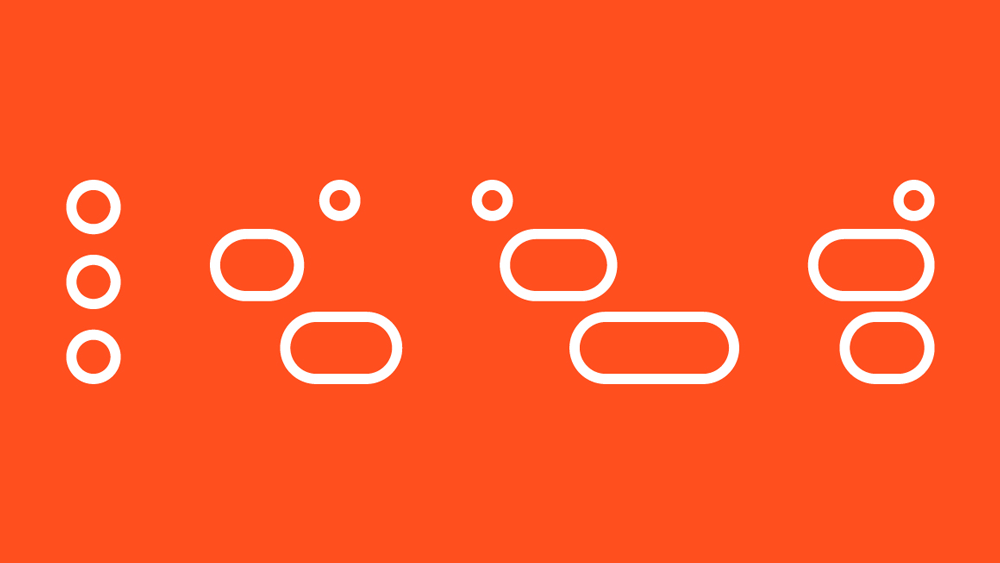 应用中通过一系列图标和插图来向用户展示新的品牌形象,这些图标和插图都是相同的橙色笔画风格,并且在动画中它们建立了灵活性、流动性概念。